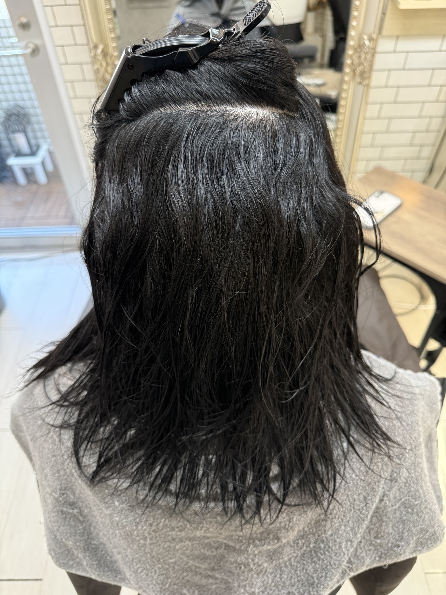 今回は細かく強い髪が多く、薬剤の浸透がしにくいので、