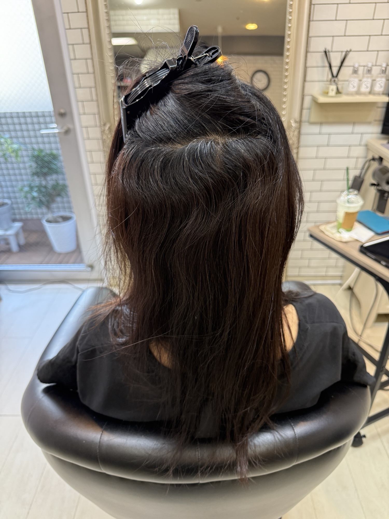 薬剤のレベルは何種類もありますが、その時の髪に合わせて各箇所で変えて塗布しています。